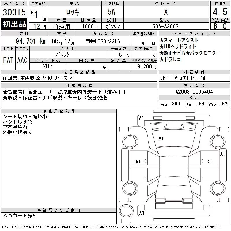 Daihatsu ROCKY с аукциона Японии CAA Chubu лот № 30315