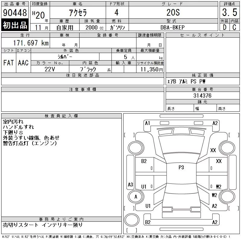 Mazda AXELA с аукциона Японии CAA Chubu лот № 90448