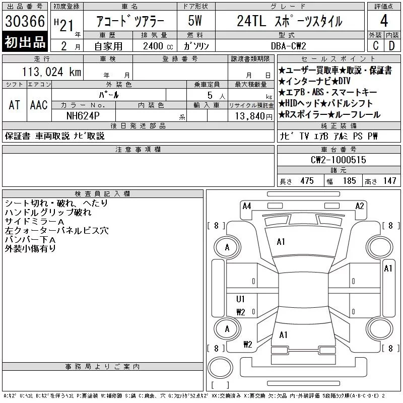 Honda ACCORD WAGON с аукциона Японии CAA Chubu лот № 30366