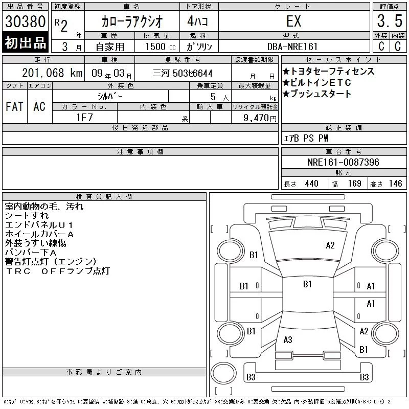 Toyota COROLLA AXIO с аукциона Японии CAA Chubu лот № 30380