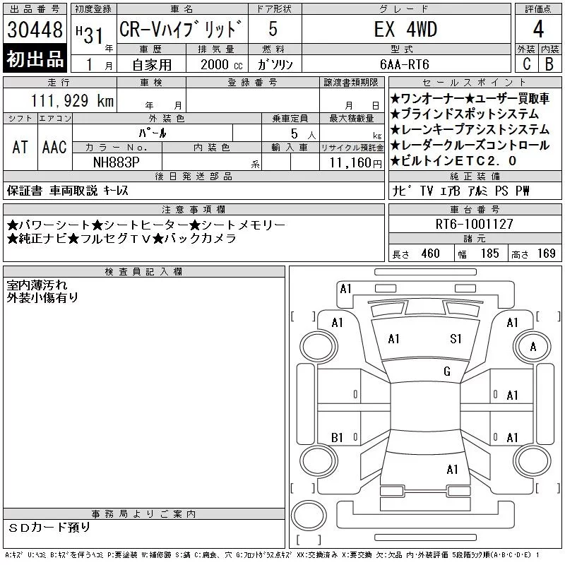 Honda CR-V с аукциона Японии CAA Chubu лот № 30448