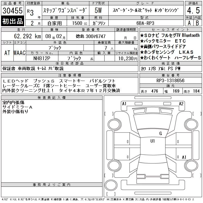 Honda STEP WAGON с аукциона Японии CAA Chubu лот № 30455