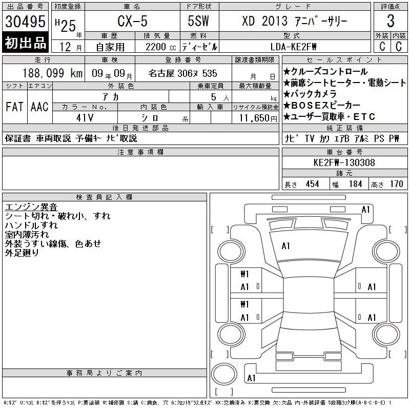 Mazda CX-5 с аукциона Японии CAA Chubu лот № 30495
