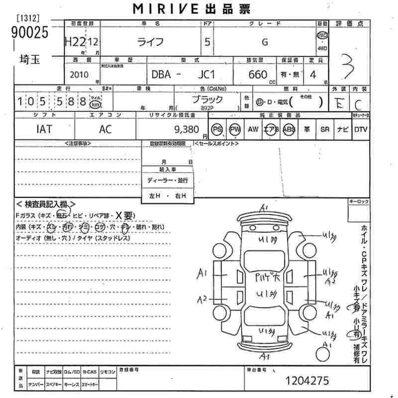 Honda LIFE с аукциона Японии MIRIVE Saitama лот № 90025