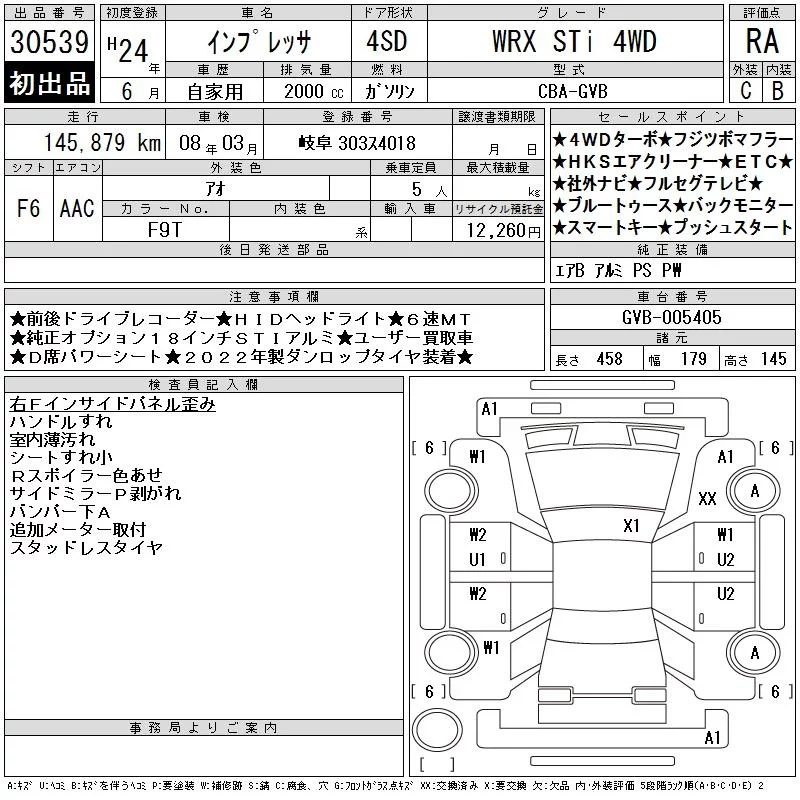 Subaru IMPREZA с аукциона Японии CAA Chubu лот № 30539