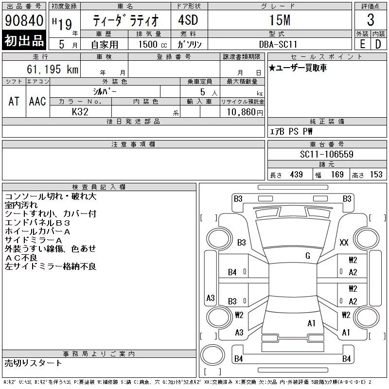 Nissan TIIDA LATIO с аукциона Японии CAA Chubu лот № 90840