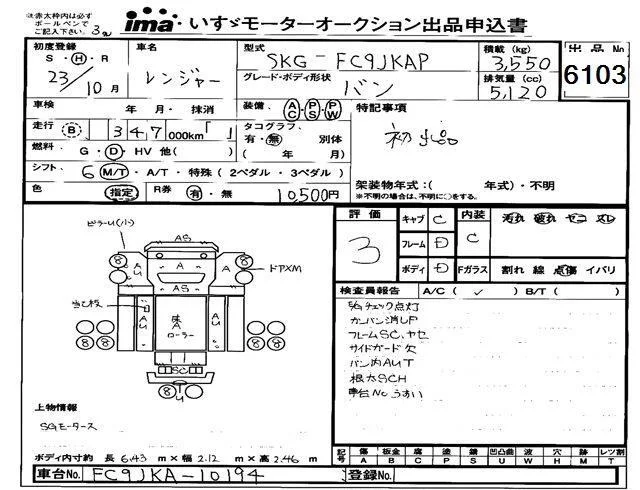 Hino RANGER с аукциона Японии Isuzu Tokyo лот № 6103