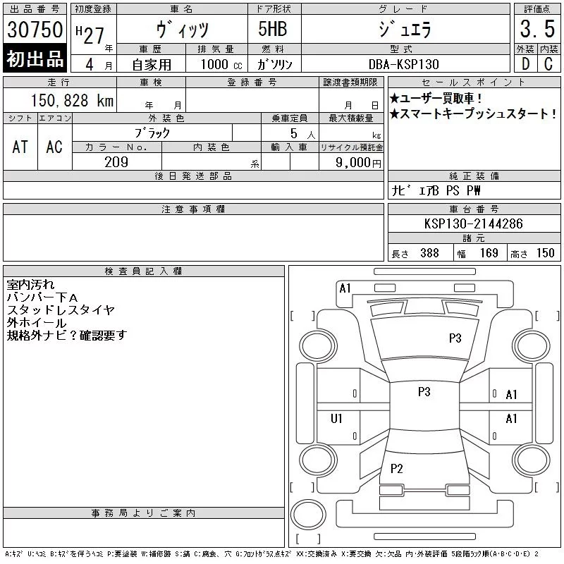 Toyota VITZ с аукциона Японии CAA Chubu лот № 30750