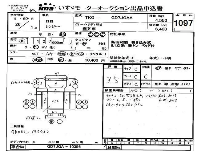 Hino RANGER с аукциона Японии Isuzu Tokyo лот № 1097