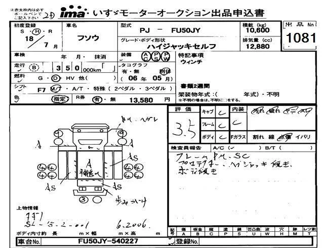 Mitsubishi FUSO TRUCK с аукциона Японии Isuzu Tokyo лот № 1081