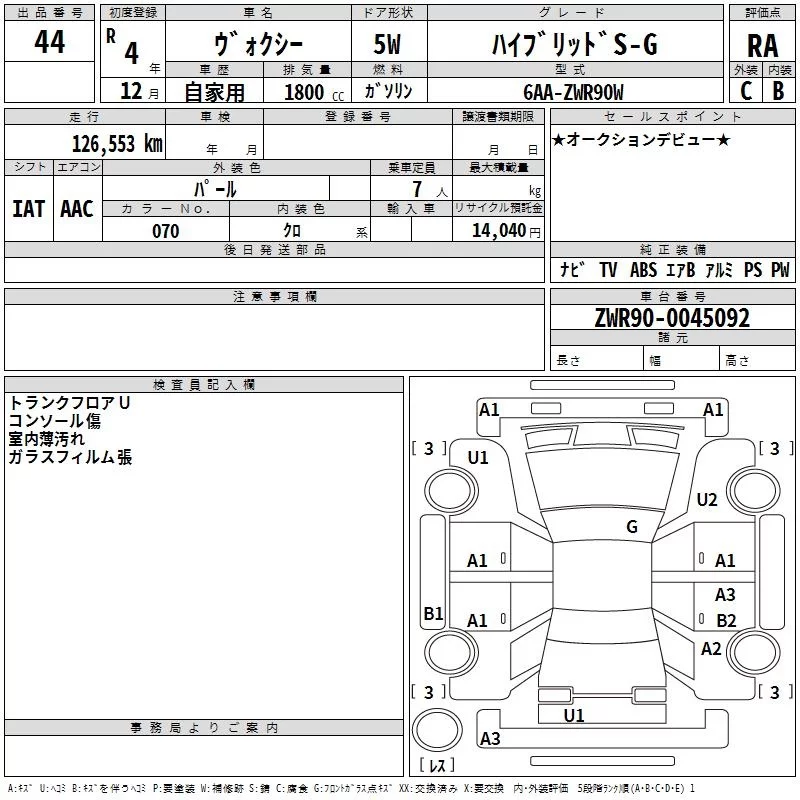 Toyota VOXY с аукциона Японии TAA Chubu лот № 44
