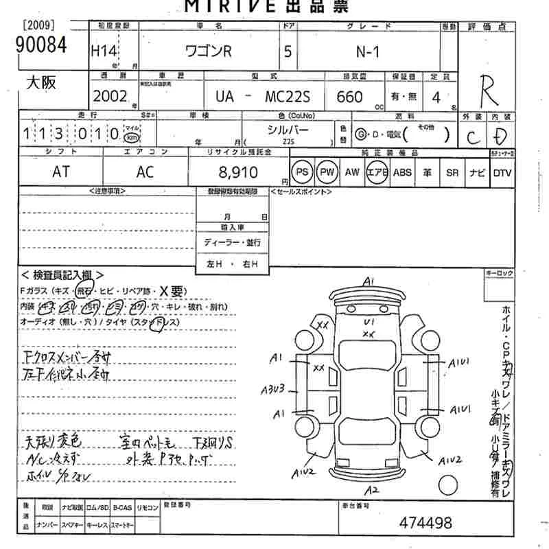 Suzuki WAGON R с аукциона Японии MIRIVE Osaka лот № 90084