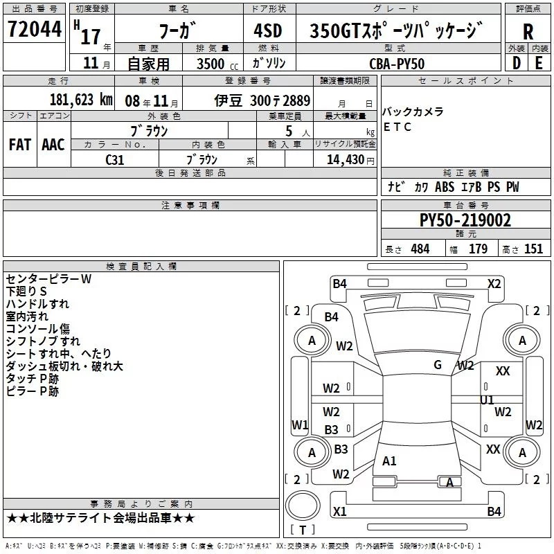 Nissan FUGA с аукциона Японии TAA Chubu лот № 72044