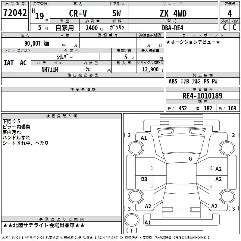 Honda CR-V с аукциона Японии TAA Chubu лот № 72042