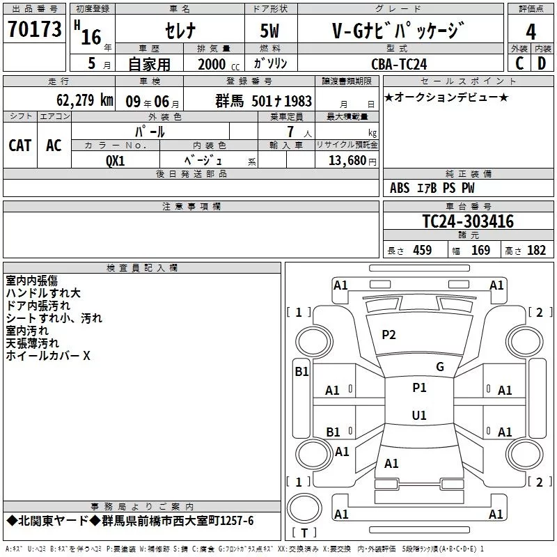 Nissan SERENA с аукциона Японии TAA Kanto лот № 70173