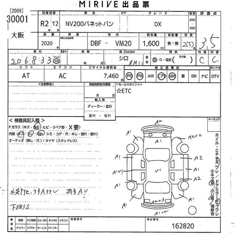 Nissan NV200 с аукциона Японии MIRIVE Osaka лот № 30001