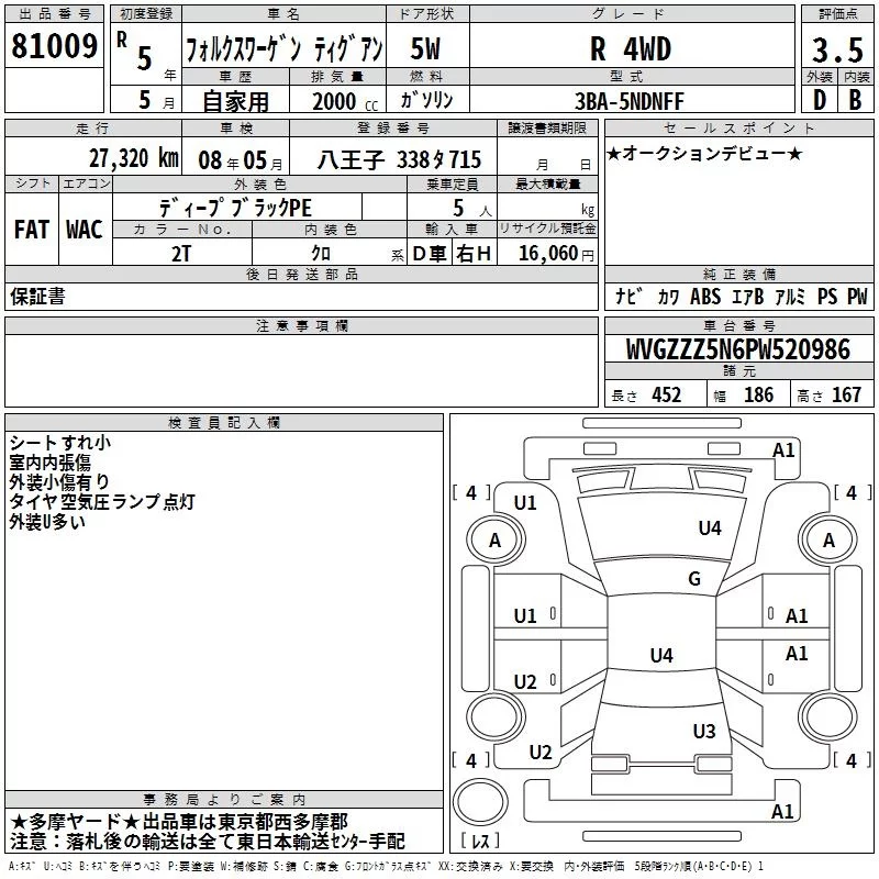 Volkswagen TIGUAN с аукциона Японии TAA Kanto лот № 81009