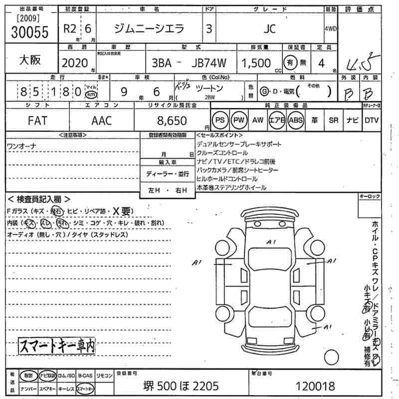 Suzuki JIMNY SIERRA с аукциона Японии MIRIVE Osaka лот № 30055