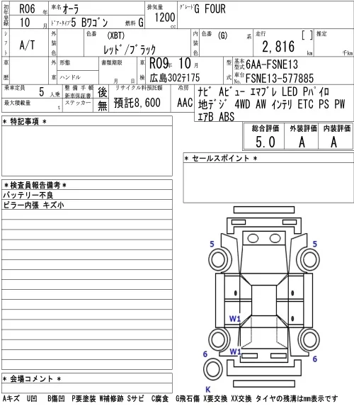 Nissan AURA с аукциона Японии NAA Osaka лот № 1010