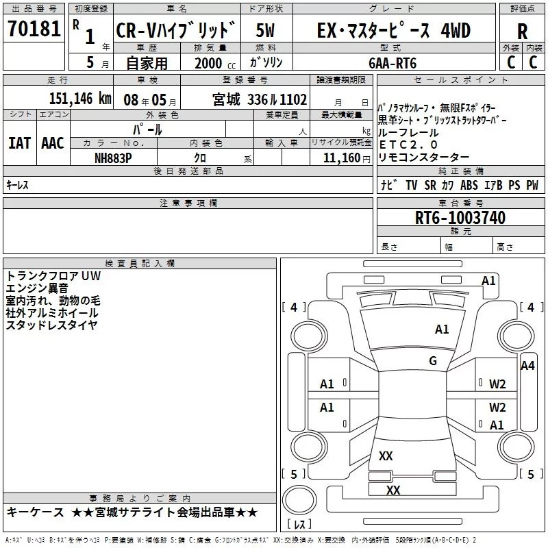Honda CR-V с аукциона Японии TAA Tohoku лот № 70181
