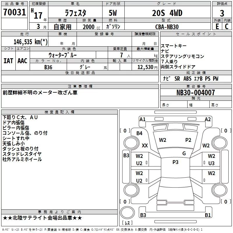 Nissan LAFESTA с аукциона Японии TAA Chubu лот № 70031