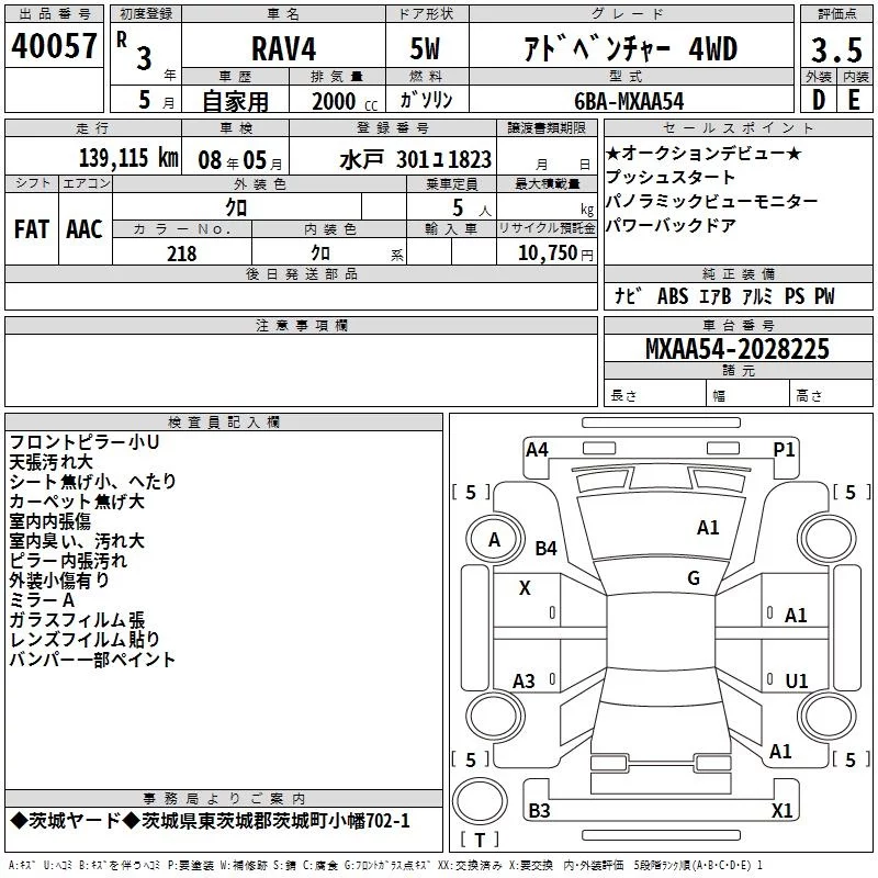 Toyota RAV4 с аукциона Японии TAA Kanto лот № 40057