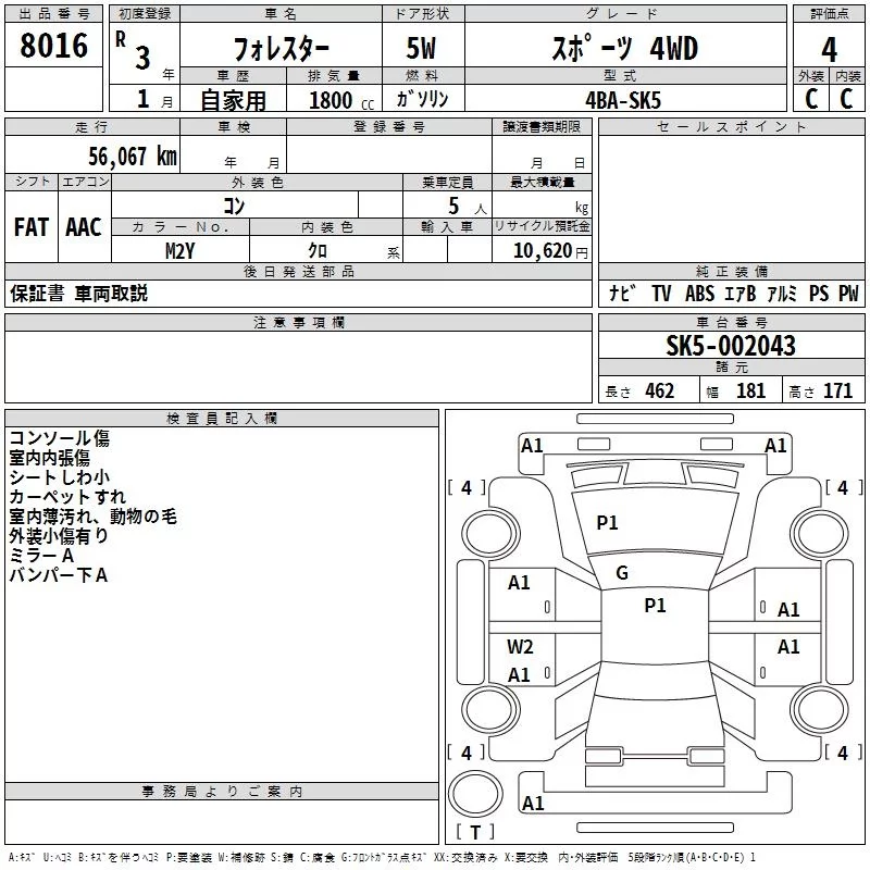 Subaru FORESTER с аукциона Японии TAA Chubu лот № 8016