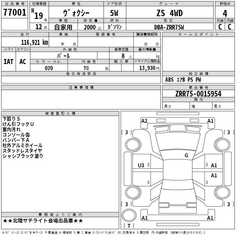 Toyota VOXY с аукциона Японии TAA Chubu лот № 77001
