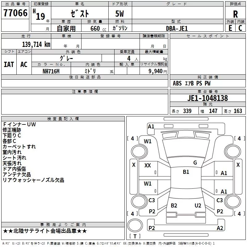 Honda ZEST с аукциона Японии TAA Chubu лот № 77066