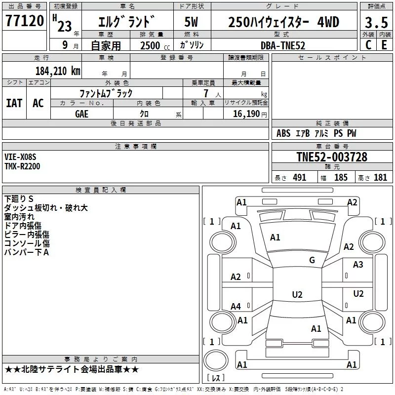 Nissan ELGRAND с аукциона Японии TAA Chubu лот № 77120