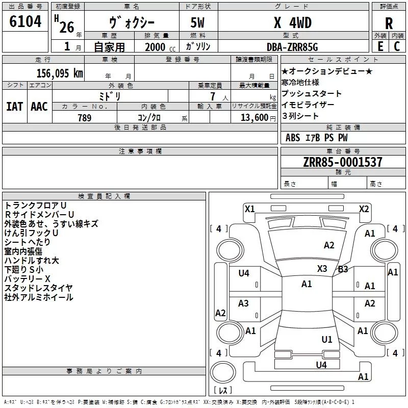 Toyota VOXY с аукциона Японии TAA Hokkaido лот № 6104