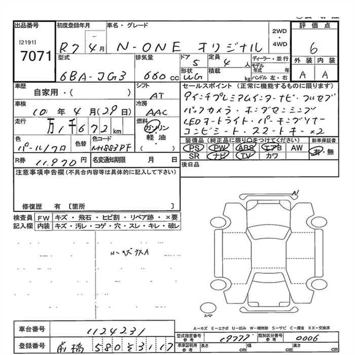 Honda N ONE с аукциона Японии JU Gunma лот № 7071