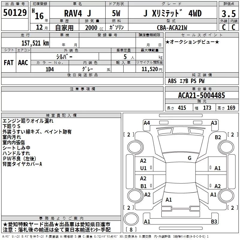 Toyota RAV4 с аукциона Японии TAA Chubu лот № 50129