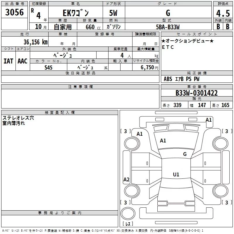 Mitsubishi EK WAGON с аукциона Японии TAA Chubu лот № 3056