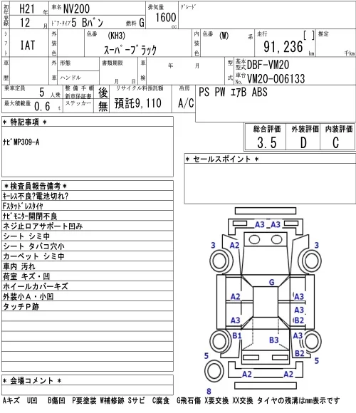 Nissan NV200 с аукциона Японии NAA Osaka лот № 8502