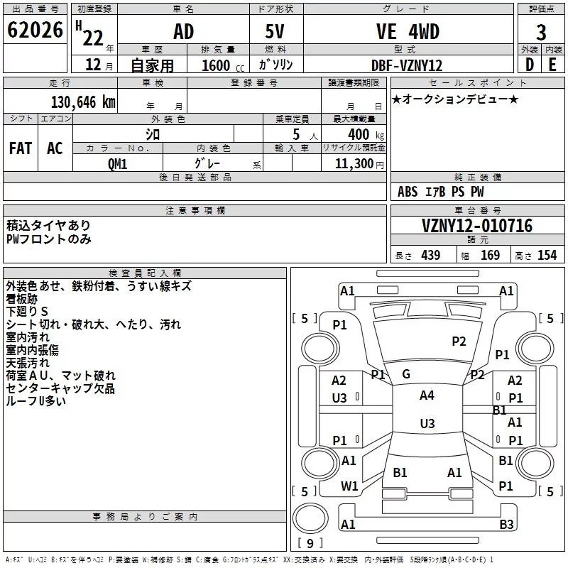 Nissan AD с аукциона Японии TAA Hokkaido лот № 62026