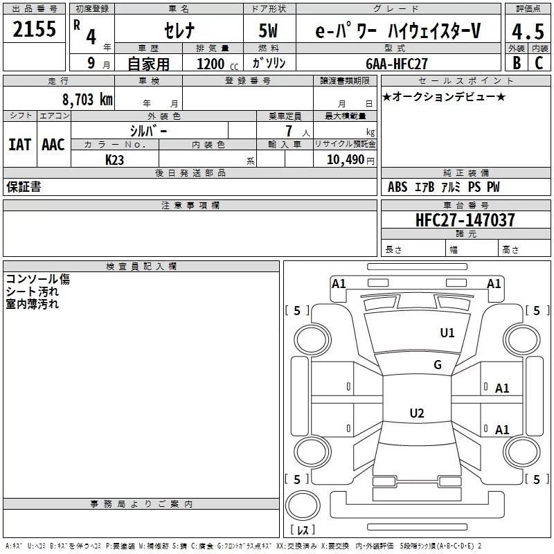 Nissan SERENA с аукциона Японии TAA Chubu лот № 2155