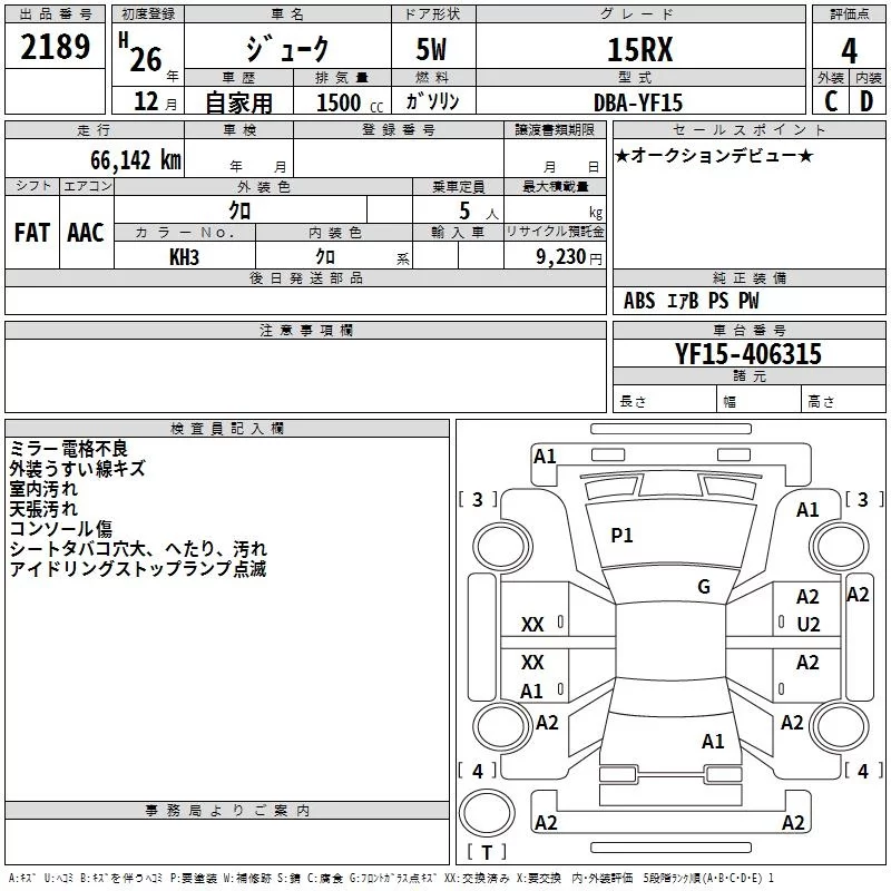Nissan JUKE с аукциона Японии TAA Chubu лот № 2189