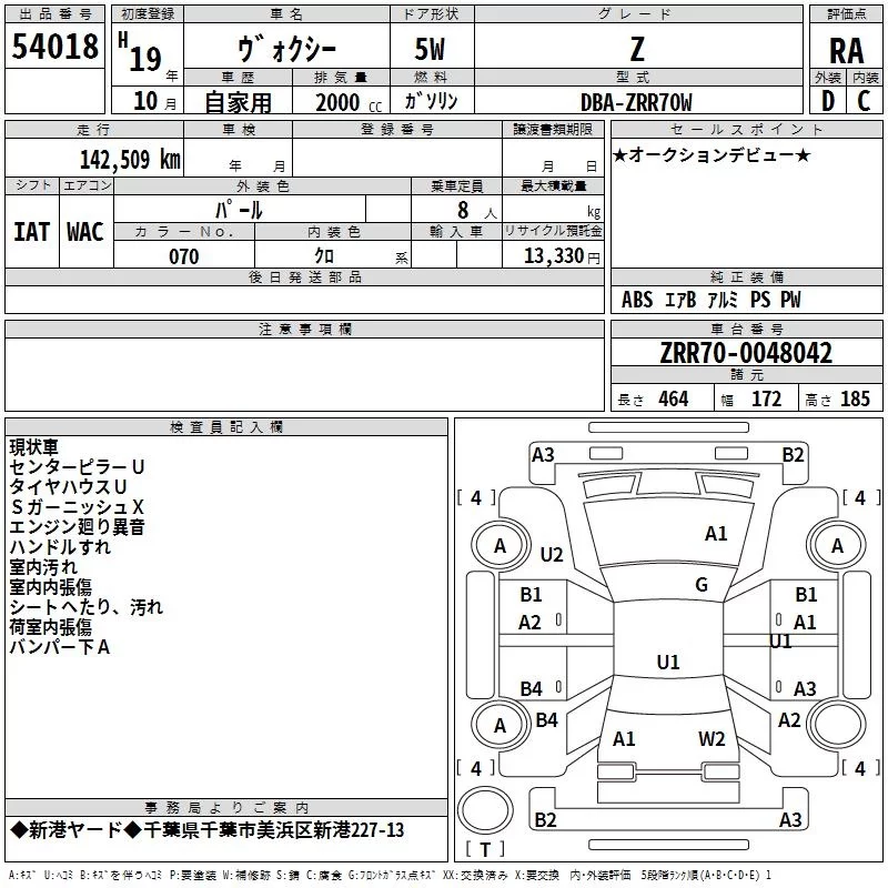 Toyota VOXY с аукциона Японии TAA Kanto лот № 54018