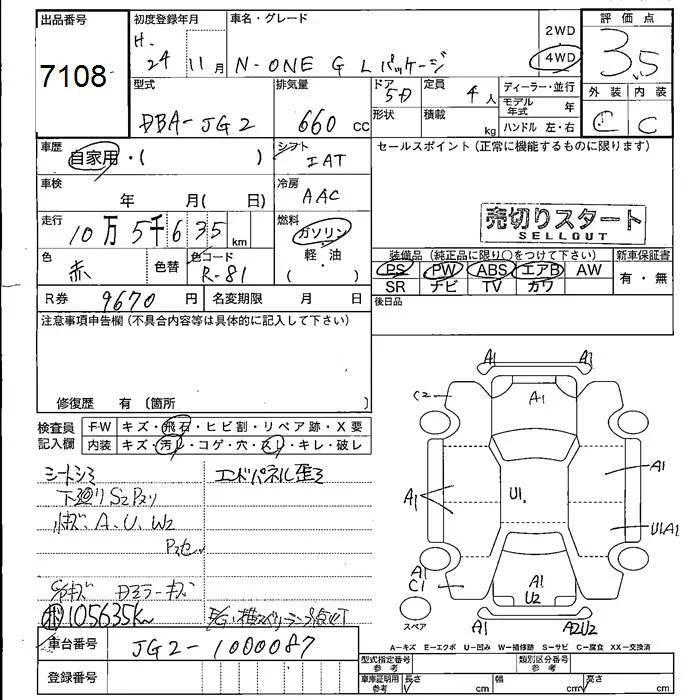 Honda N ONE с аукциона Японии JU Fukushima лот № 7108