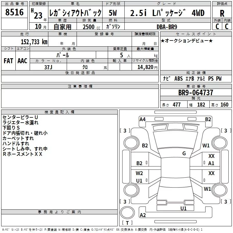 Subaru LEGACY OUTBACK с аукциона Японии TAA Chubu лот № 8516