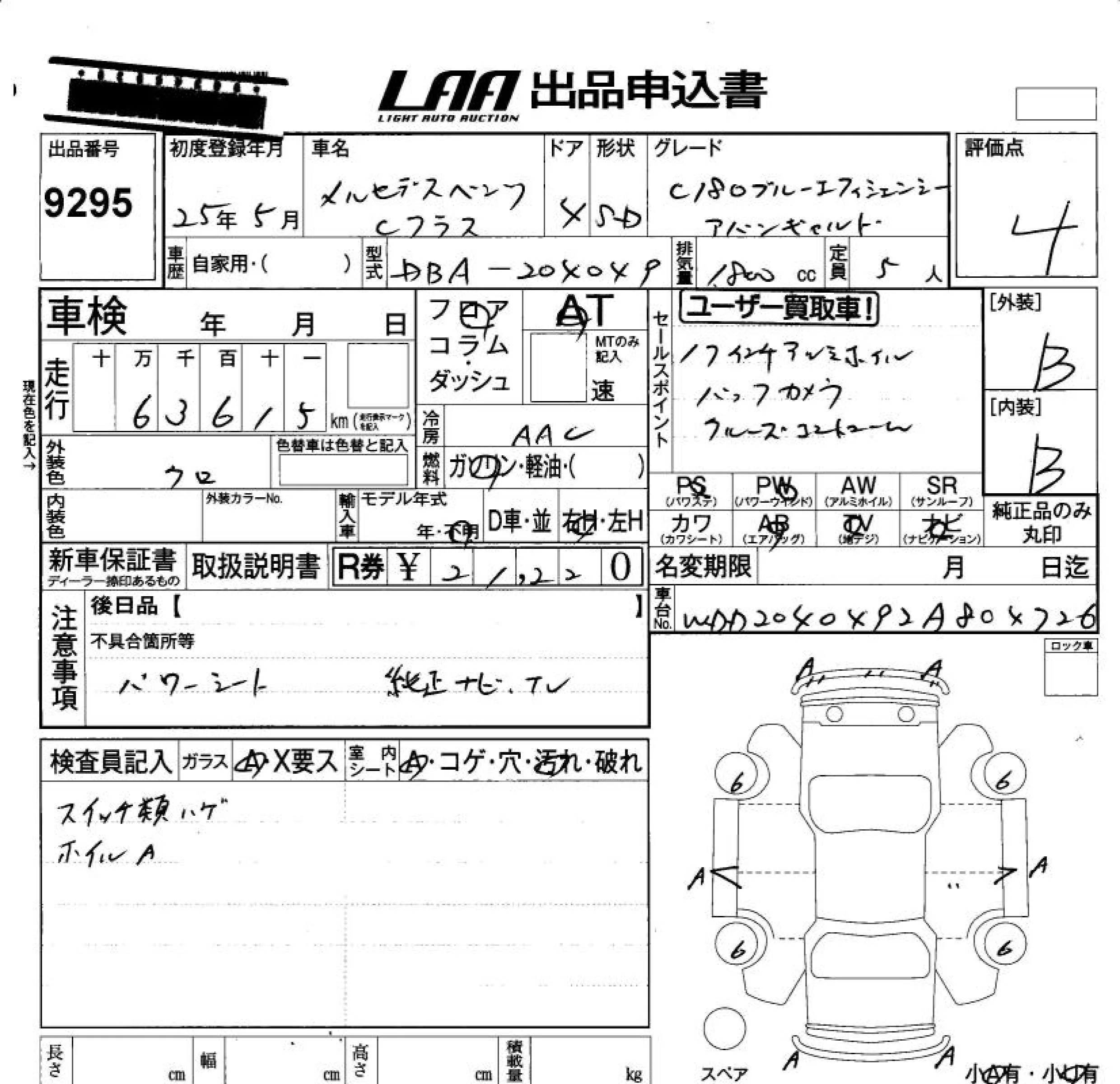Mercedes-Benz C CLASS с аукциона Японии LAA Okayama лот № 9295