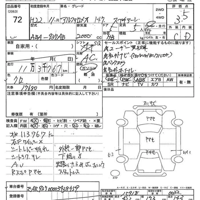 Alfa Romeo 147 с аукциона Японии JU Niigata лот № 72
