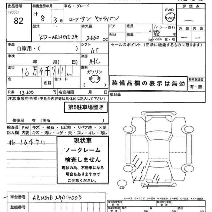 Nissan CARAVAN с аукциона Японии JU Niigata лот № 82