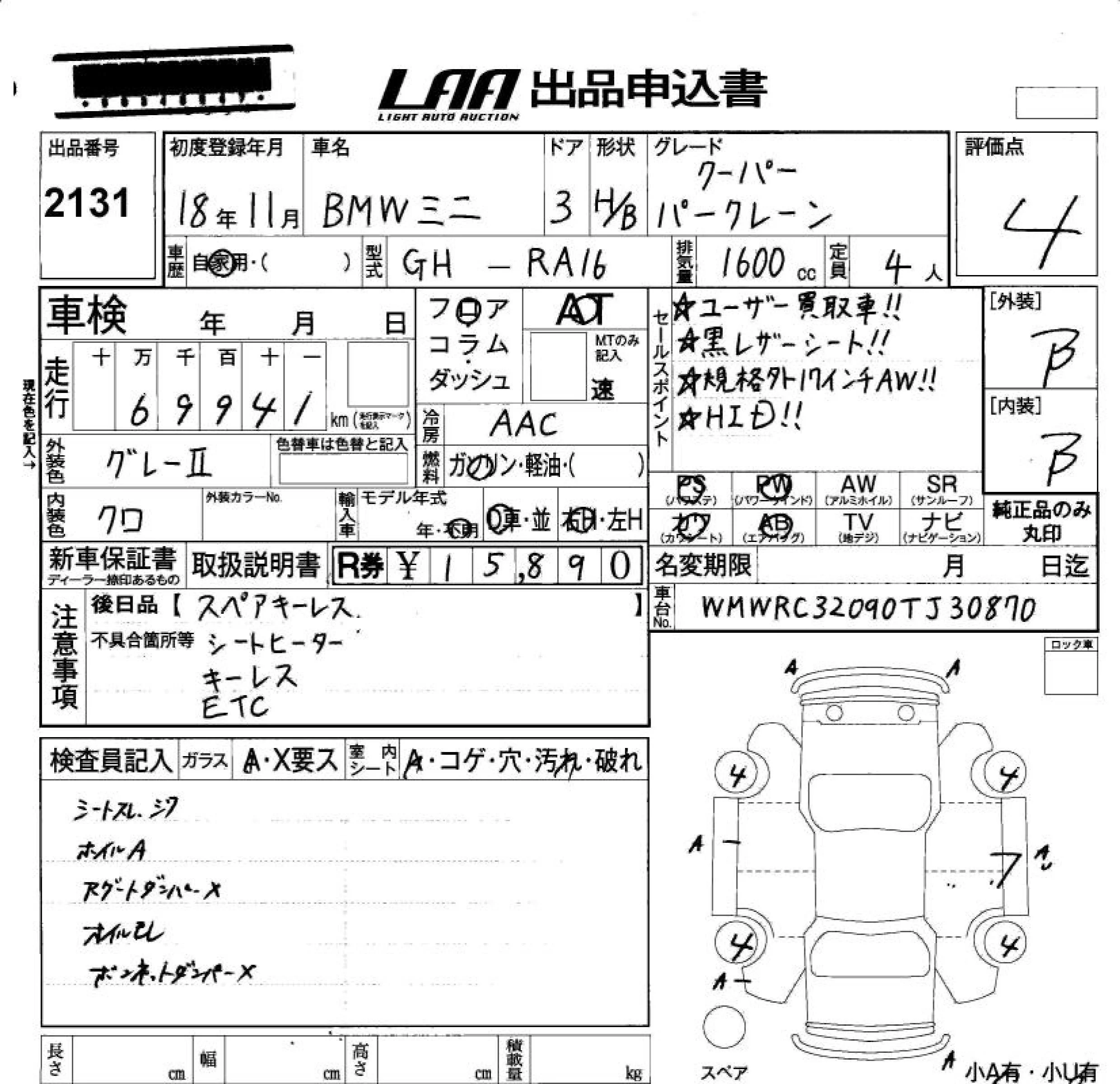 BMW MINI с аукциона Японии LAA Okayama лот № 2131