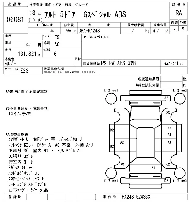 Suzuki ALTO с аукциона Японии ARAI Sendai лот № 6081