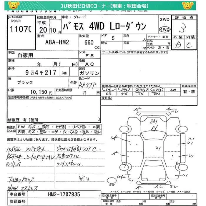 Honda VAMOS с аукциона Японии JU Miyagi лот № 11070