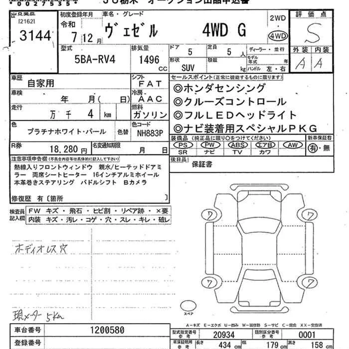 Honda VEZEL с аукциона Японии JU Tochigi лот № 3144