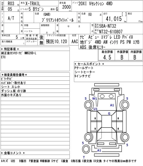 Nissan X-TRAIL с аукциона Японии NAA Tokyo лот № 1004