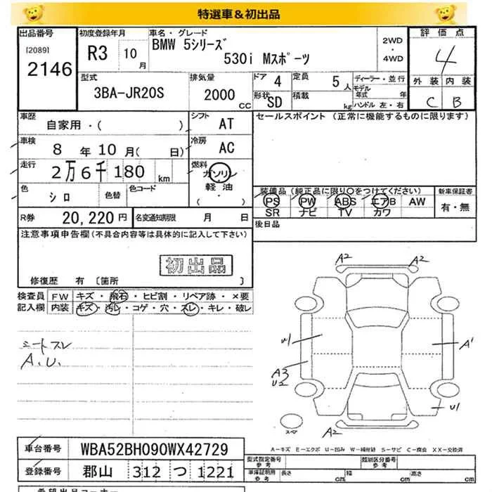 BMW 5-Series с аукциона Японии JU Miyagi лот № 2146